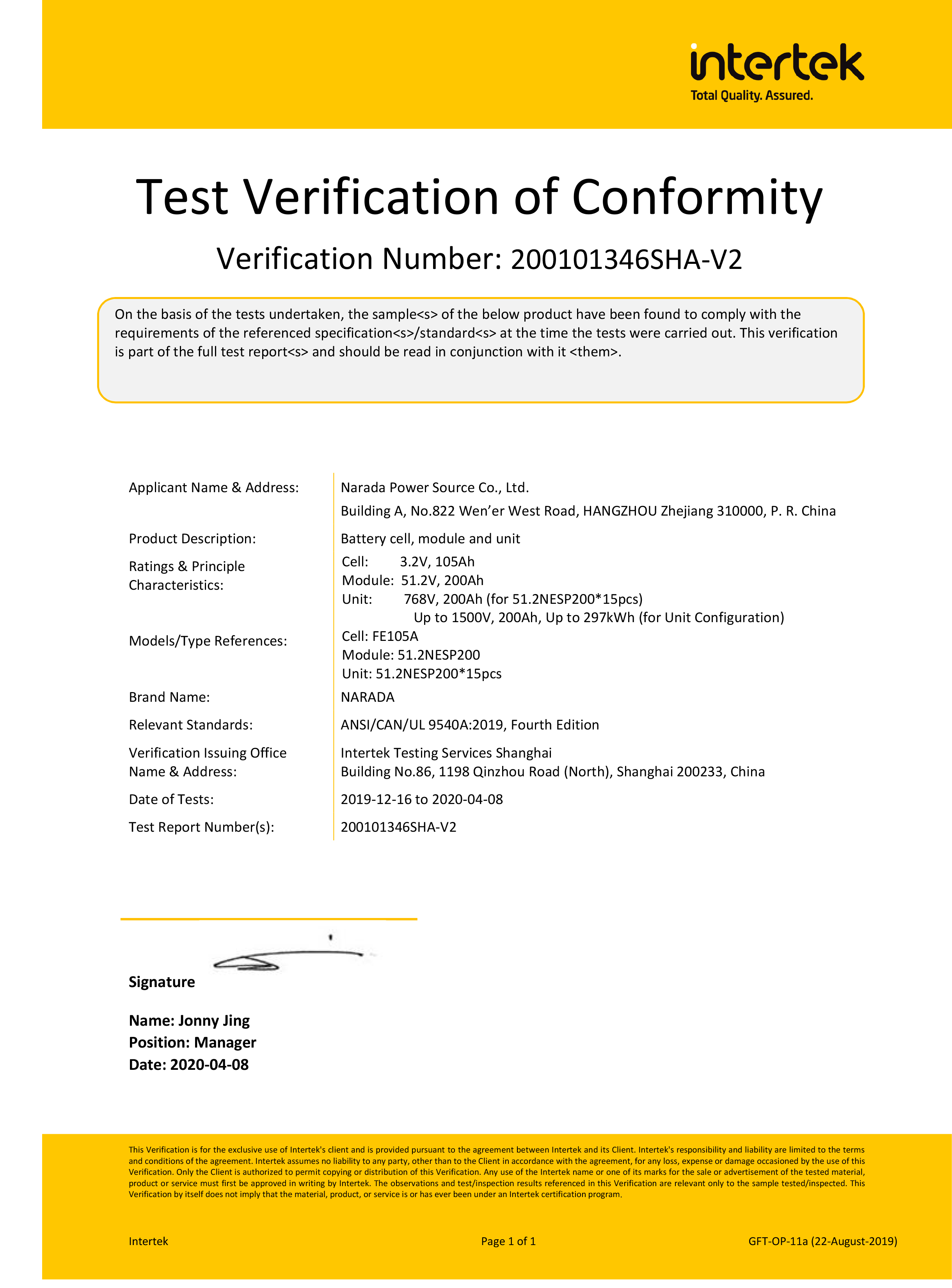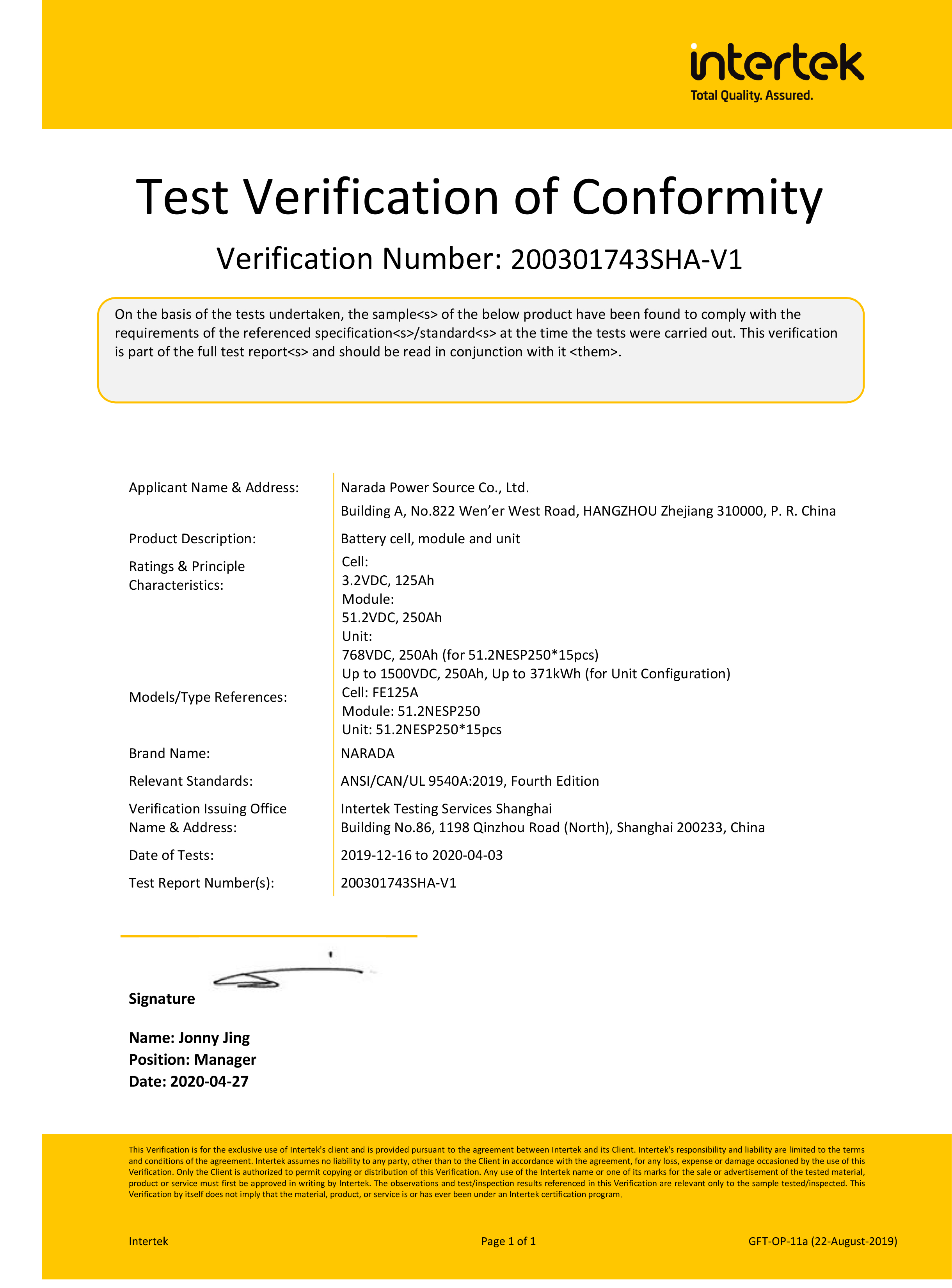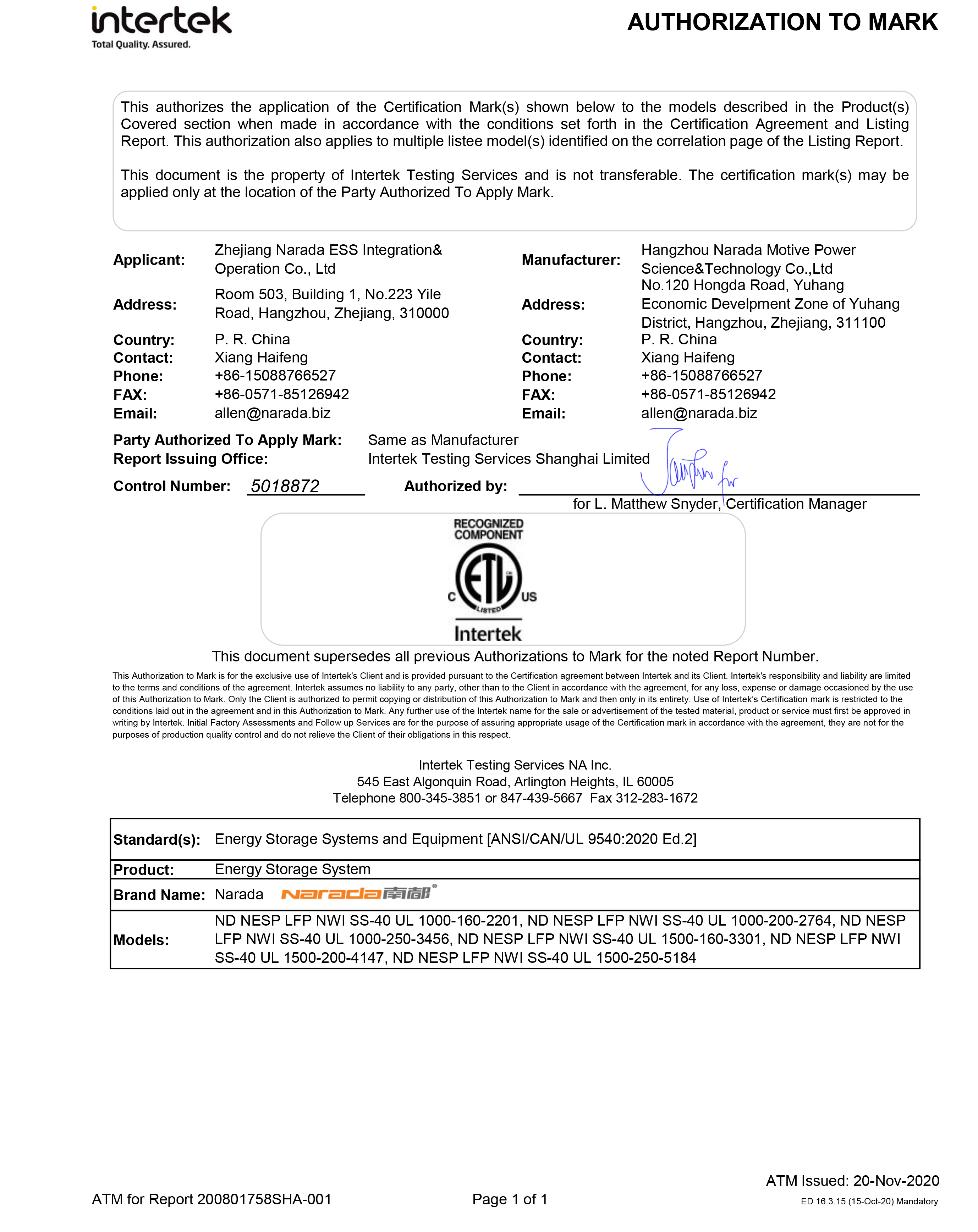 BG大游电源为全球第一批通过MW级集装箱储能系统UL9540、UL9540A认证的企业。通过UL9540、UL9540A认证,意味着BG大游储能系统在全球范围内具有极佳的认可度。